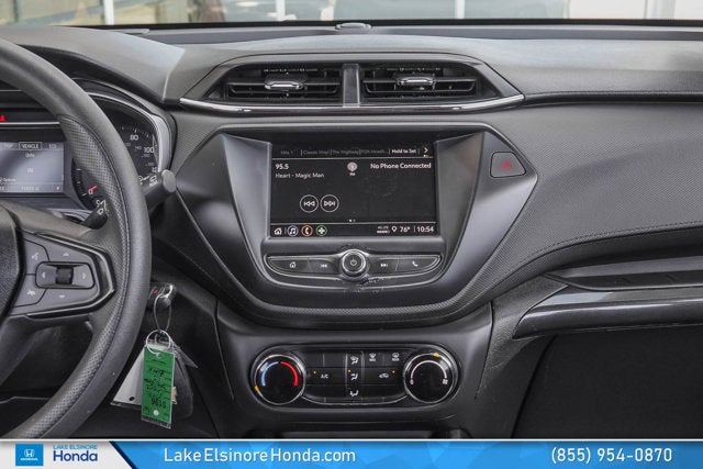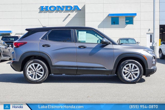 Lake Elsinore Honda is proud to present this Chevrolet TrailBlazer equipped with the following features: Driver Confidence & Cruise Package (Electronic Cruise Control w/Set & Resume Speed, Lane Change Alert w/Side Blind Zone Alert, Rear Cross Traffic Alert, and Rear Park Assist), Preferred Equipment Group 1LS, 4-Way Manual Front Passenger Seat Adjuster, 4-Wheel Disc Brakes, 5.45 Axle Ratio, 6 Speakers, 6-Speaker Audio System Feature, 6-Way Manual Driver Seat Adjuster, ABS brakes, Air Conditioning, Alloy wheels, AM/FM radio: SiriusXM, Auto High-beam Headlights, Brake assist, Bumpers: body-color, Cloth Seat Trim, Compass, Delay-off headlights, Driver door bin, Driver vanity mirror, Dual front impact airbags, Dual front side impact airbags, Electronic Stability Control, Emergency communication system: OnStar and Chevrolet connected services capable, Exterior Parking Camera Rear, Flat-Folding Front Passenger Seatback, Front anti-roll bar, Front Bucket Seats, Front Center Armrest, Front License Plate Bracket, Front reading lights, Front wheel independent suspension, Fully automatic headlights, Illuminated entry, Knee airbag, Low tire pressure warning, Not Equipped w/Rear Park Assist, Occupant sensing airbag, Overhead airbag, Overhead console, Panic alarm, Passenger door bin, Passenger vanity mirror, Power door mirrors, Power steering, Power windows, Radio data system, Radio: Chevrolet Infotainment 3 System, Rear side impact airbag, Rear window defroster, Rear window wiper, Remote keyless entry, Ride & Handling Suspension, Security system, SiriusXM Radio, Split folding rear seat, Spoiler, Steering wheel mounted audio controls, Tachometer, Telescoping steering wheel, Tilt steering wheel, Traction control, Trip computer, Variably intermittent wipers, Wheels: 17" Silver-Painted Aluminum, and Wireless Apple CarPlay/Android Auto.